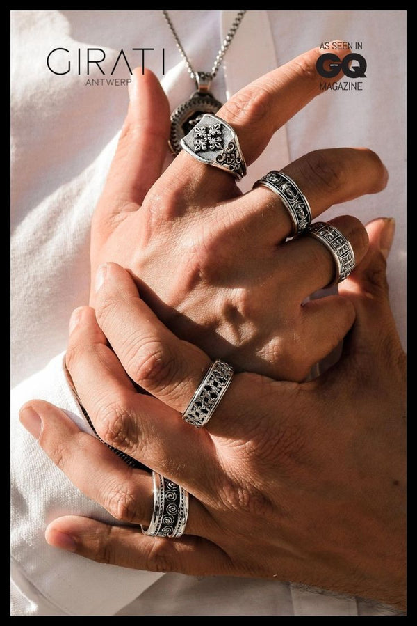 Layer with intention. Vary lengths. Balance weight. Let each piece complement not compete. Rule of thumb: 2 Chains max or 2 Rings per hand or Bracelet + Watch = clean pairing